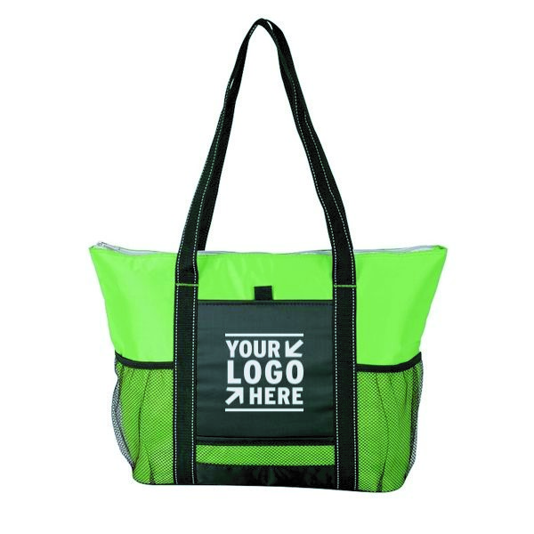 This beautiful tote bag is exactly what you need to promote your brand in a simple way! The canvas tote bag has heat-sealed PEVA lining insulation to keep drinks cool and food fresh. The 6" x 13.5" x 15" bag is designed with mesh front pockets and another front pocket that's equipped with a hook and loop closure. It also features a zippered main compartment and 1 1/4" x 28" carrying handles. Choose from a selection of colors and customize the bag with your company, organization, school, or club's logo, emblem, and/slogan. This is an item recipients will love taking home with them!